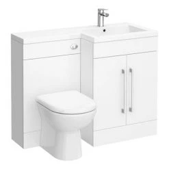 An ideal space saving solution for en-suites and cloakrooms, this Brooklyn 2-in-1 combined wash basin and toilet utilises the smallest of spaces and creates more space in your bathroom. Made from high quality materials with a stunning finish, it compliments any modern bathroom to create a designer look. Comes with a single tap hole Polymarble basin top and ceramic back to wall pan with wrap over quick release soft-close seat and cover.
