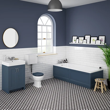 A high-quality traditional bathroom suite with a satin blue finish from the Chatsworth range, ideal for creating a period look in your bathroom.