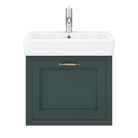A high-quality traditional bathroom suite featuring a traditional low level toilet and a 560mm wide wall hung green vanity unit with it’s classic styling has been designed to match the Chatsworth range of bathroom furniture. Victorian inspired design with a modern twist.