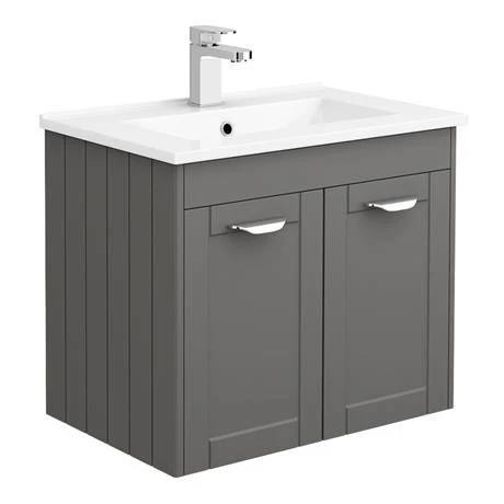 (1) Grey Shaker-Style 600 2-Door Wall Hung Vanity