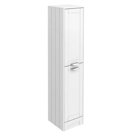 The 1015mm wide vanity unit with sleek slim line minimalist ceramic basin top and 1400mm high tall boy unit with contemporary chrome handles provides the perfect storage solution in your bathroom without taking up unnecessary space, vanity comes with two soft close cupboard doors and two drawers.