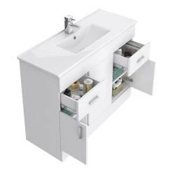 The Monza wall hung furniture package is perfect for adding an stunning open look to your bathroom. It’s stylish rounded corners and minimalist handle-less design make this wall hung cabinet suitable for any style of bathroom.