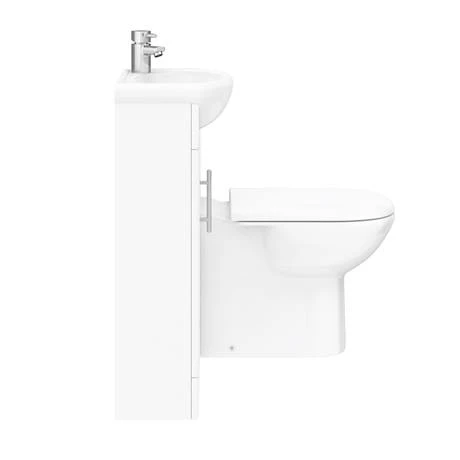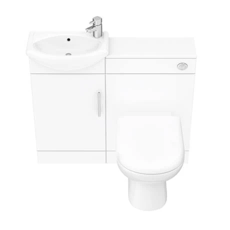 Kit out the smallest room in the house with this Sienna High Gloss White Vanity Suite. Installing a combined toilet and sink unit maximises the space available in your bathroom. This cloakroom bathroom suite includes a minimalist style modern toilet with a short projection of 530mm, plus a sink packed with handy bathroom storage. All pipework and the cistern are fully concealed, so you’ll benefit from a beautifully streamlined fuss free look. Drill the front panel for a right or left hand flush to suit the layout of your home.