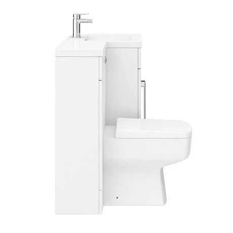 Need to save space in your bathroom? At just 1100mm in width, the streamlined Valencia bathroom combination unit is perfect for smaller areas like cloakrooms and en suites. It features a high-quality square toilet with a concealed cistern unit to hide unsightly pipework, while the matching sink is made from robust poly-marble and sits above a cupboard with two doors for easy storage. Made with versatility in mind, the combination vanity unit is available in either left or right hand options and features a clean white gloss to complement a range of interiors.