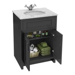 Chatsworth White Marble Traditional Graphite Vanity Unit + Toilet Package